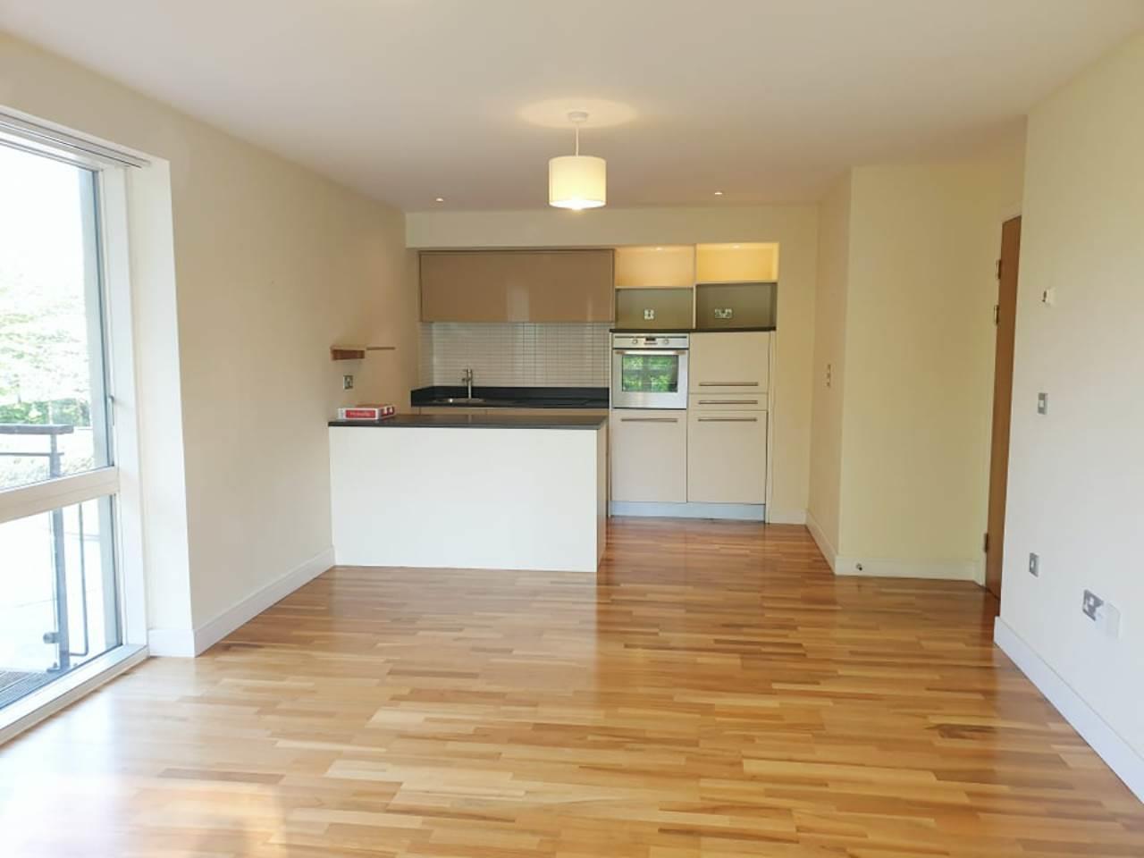 The apartment is offered on an unfurnished basis. The fully integrated kitchen comes fitted with a separate fridge and freezer, dishwasher and washer/dryer. Both bedrooms are equipped with spacious fitted wardrobes allowing maximum space in both bedrooms. The second bedroom also has a built in desk.